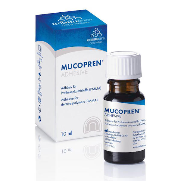 Haftmaterial bei Erneuerung oder Korrektur der Prothesenunterfütterung mit Mucopren Soft.