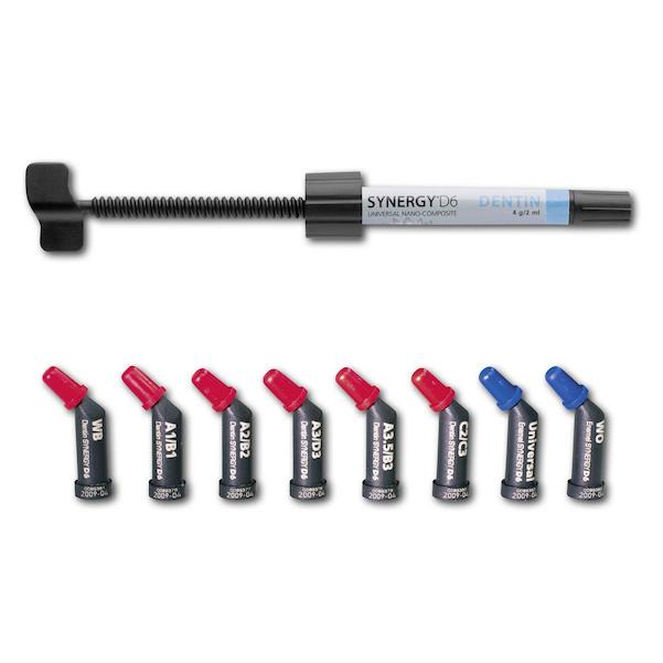 Synergy D6 ist ein Composite für höchste Ansprüche. Das Handling ist denkbar einfach. Das intelligente und ökonomische Farbangebot, bestehend aus 7 Dentin- und 2 Universal-Schmelzfarben, bietet das passende Material für alle Indikationen und Anforderungen. Exzellente optische Einblendeigenschaften, reduzierte Schrumpfung, perfekte Verarbeitungseigenschaften, Duo Shade System, natürlich opalisierender Effekt, einzigartiger Farbschlüssel (direkte Farbkombination möglich, wenn einzelne Farben für die Schichttechnik ausgewählt werden).